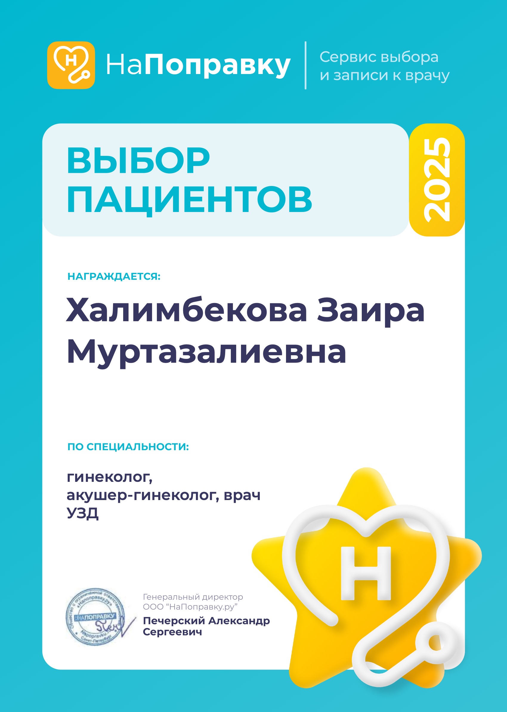 Аккредитация от 23.04.2024 по специальности "Акушерство и гинекология", уникальный номер реестровой записи №7724.031868399, ФГБОУ ДПО "Российская медицинская академия непрерывного профессионального образования" Минздрава РФ