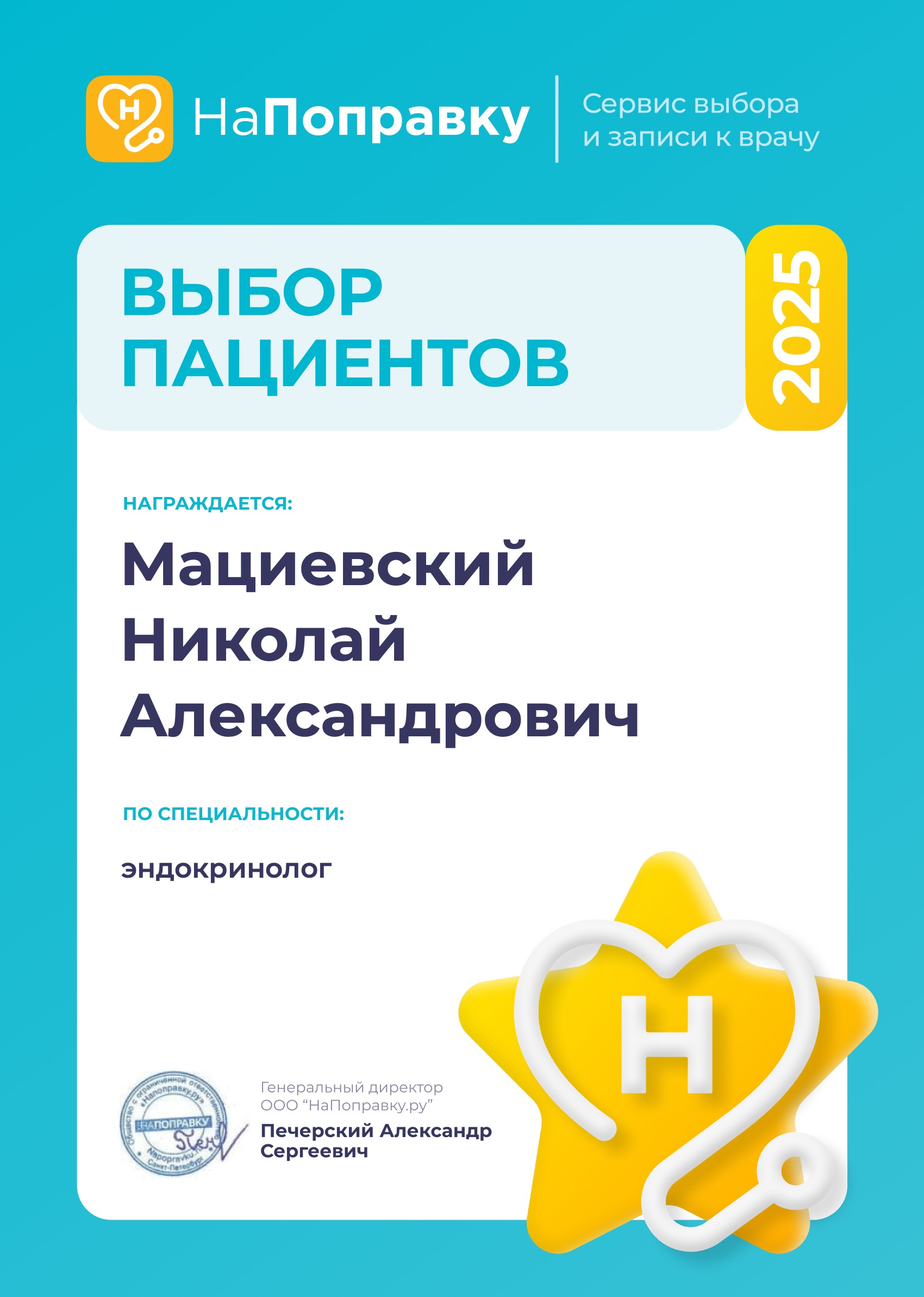 2018, 2013 Повышение квалификации по специальности «Эндокринология», СПбГМА им. И.И.Мечникова