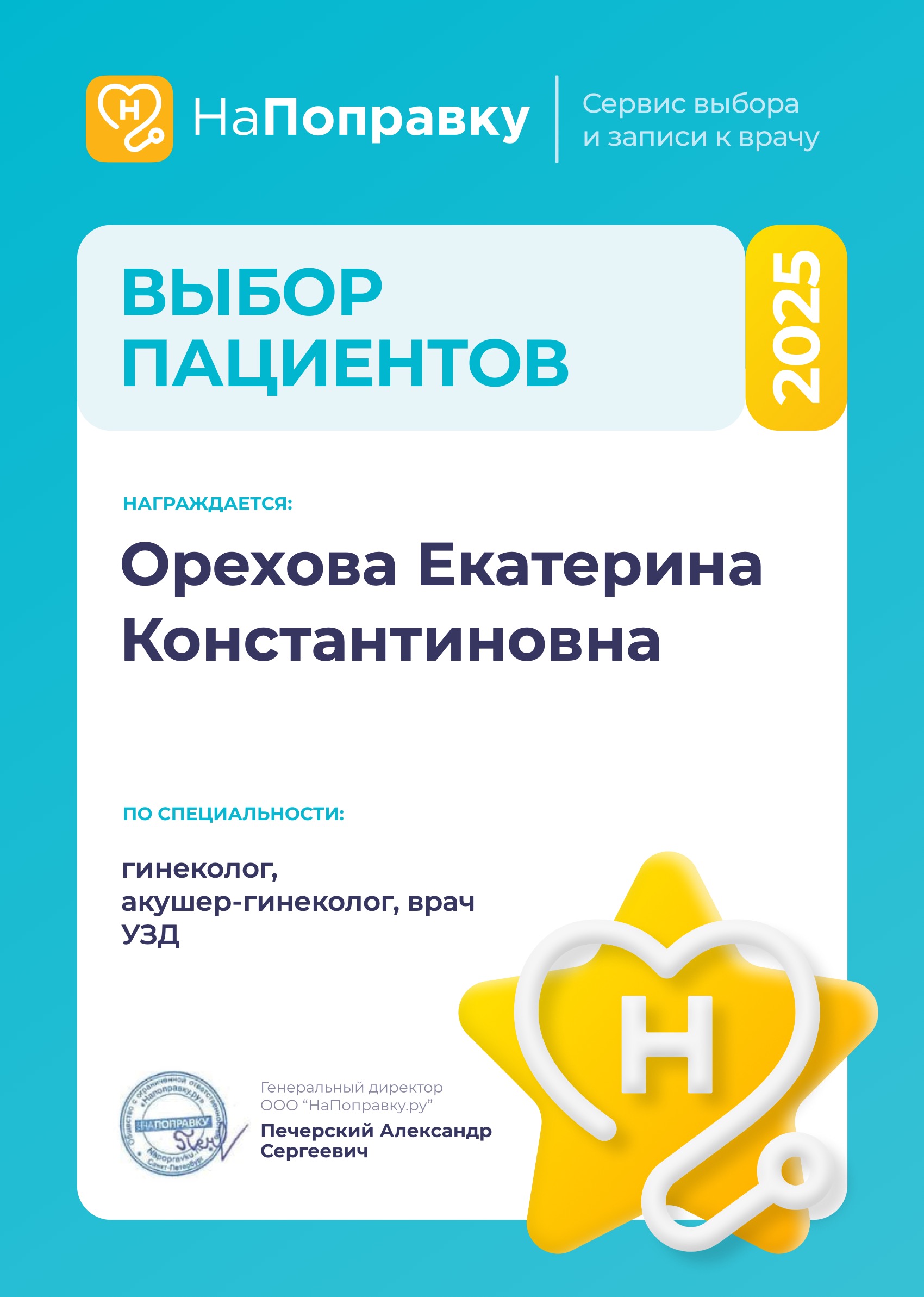 2020 Повышение квалификации по программе «Актуальные вопросы ультразвуковой диагностики», ЧОУ ДПО «Академия медицинского образования им. Ф. И. Иноземцева»